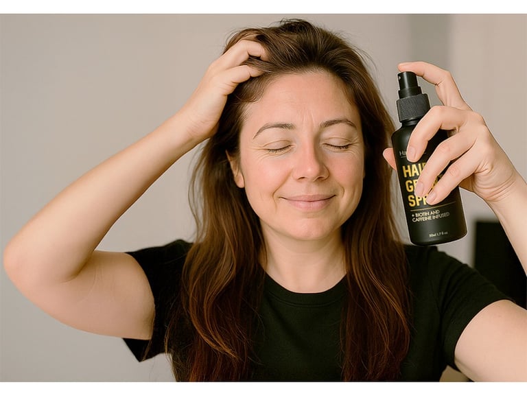 Our spray stimulates follicles to revive lost hair gently.